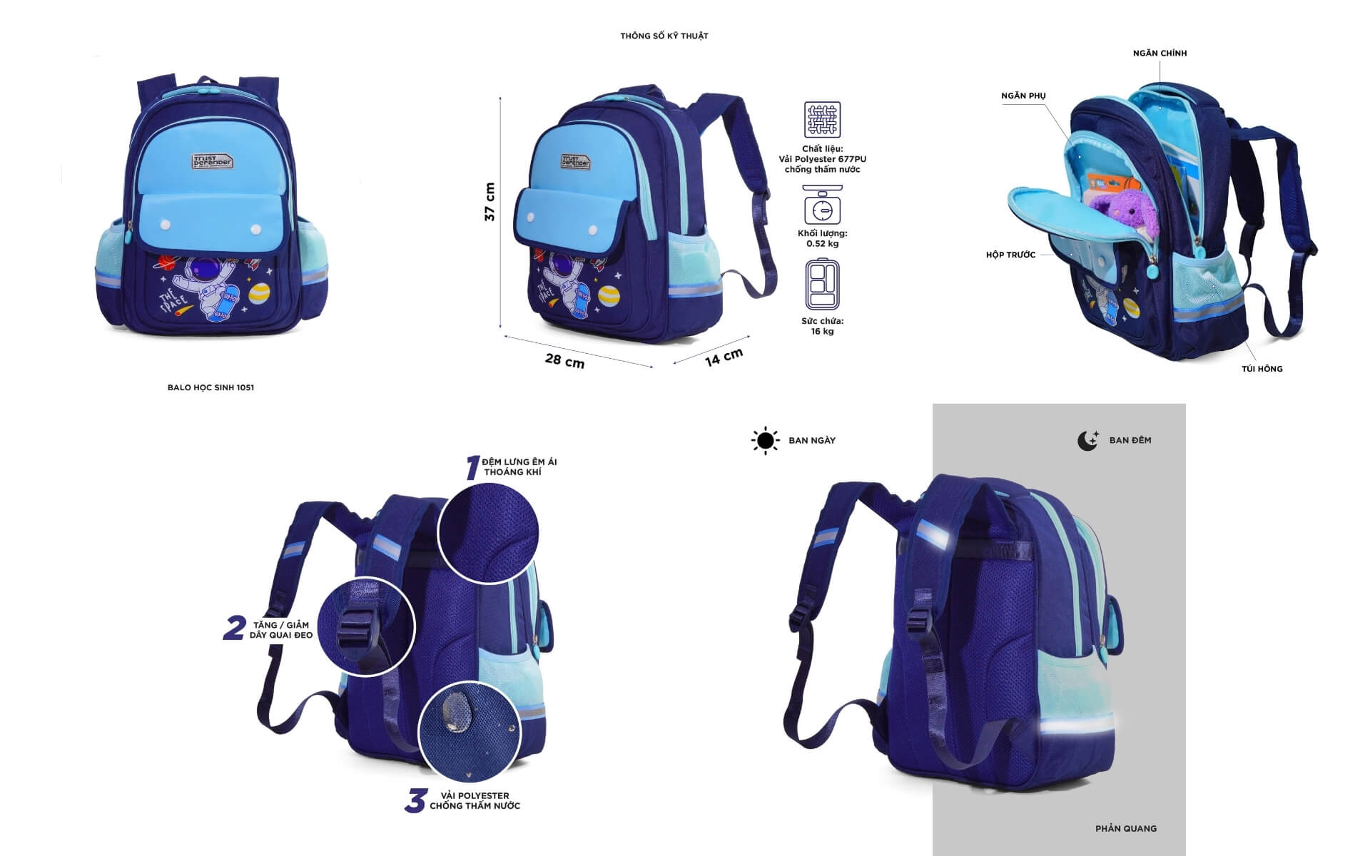 Khối lượng: Chỉ 0.52 kg. Cực nhẹ, giúp giảm gánh nặng lên vai và lưng của bé.