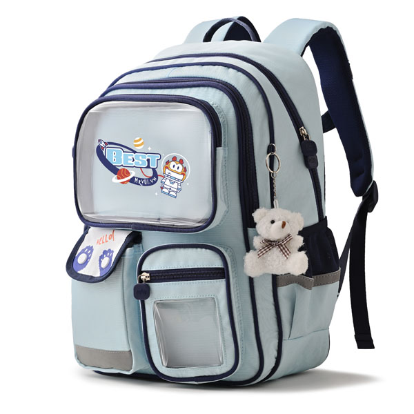 Balo 1074 còn trang bị ba ngăn nhỏ phía trước với thiết kế kính trong, giúp dễ dàng nhìn thấy và lấy đồ dùng nhanh chóng.