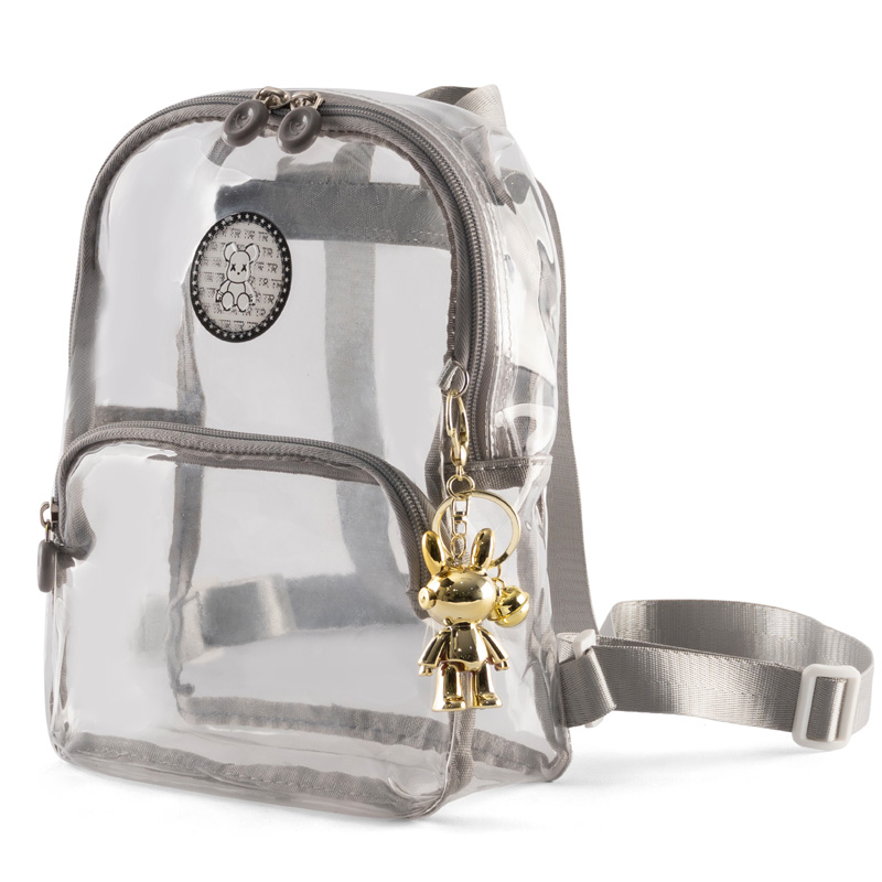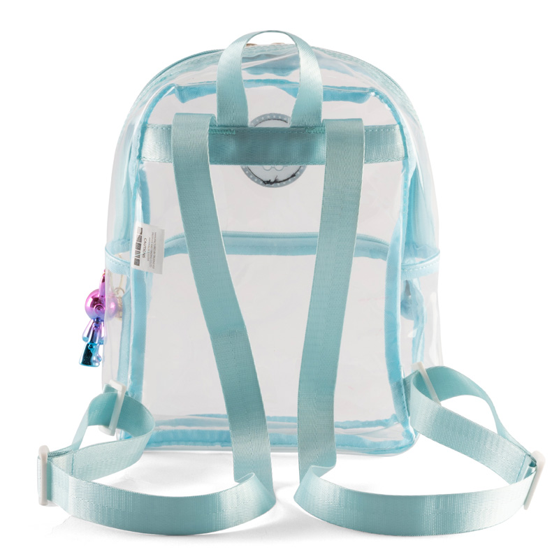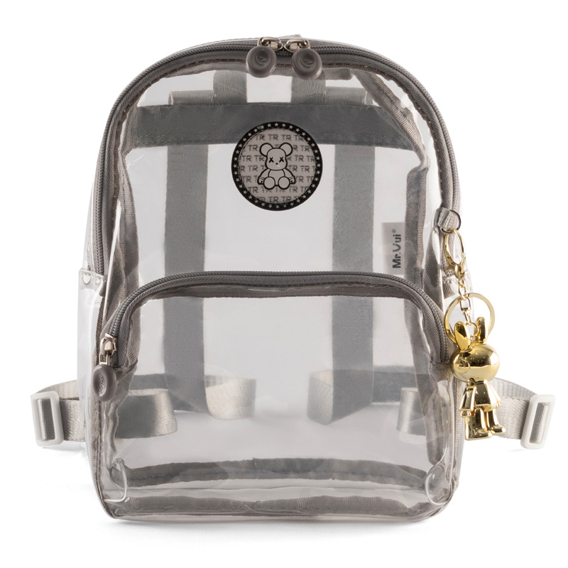 Chất liệu PVC trong suốt và bền bỉ: Balo được làm từ PVC trong suốt. Chất liệu này không chỉ đẹp mắt mà còn có khả năng chống thấm nước hiệu quả, dễ dàng vệ sinh.