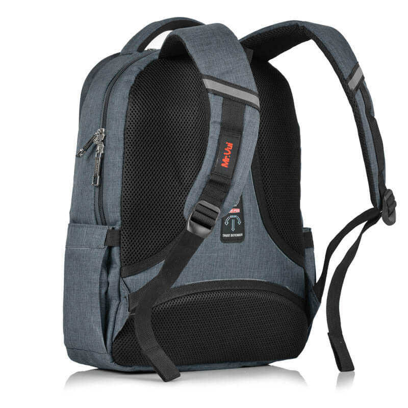 Balo laptop Mr Vui được may bằng kỹ thuật gấp mép dây viền, thiết kế ôm sát vai, bản to, nệm êm, thoáng khí, thấm hút mồ hôi giảm cảm giác nóng. Quai dây có thể nới dài hoặc rút ngắn linh hoạt. Các mút đệm hơi phân bố đều trên 2 dây đeo, co giãn đều khi di chuyển giúp các cơ trên vai và sau gáy không bị mỏi.