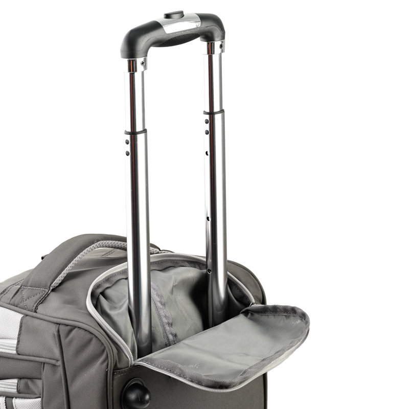 Cần kéo được làm bằng hợp kim nhôm nên khá chắc chắn, mạ crom sang trọng. Cần kéo nằm âm bên trong túi, được thiết kế hai nấc phù hợp với chiều cao của từng người nên di chuyển khá dễ dàng.
