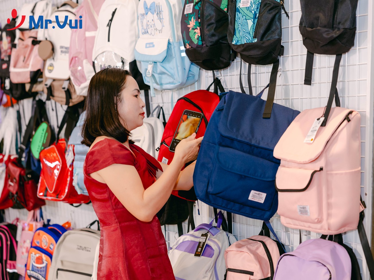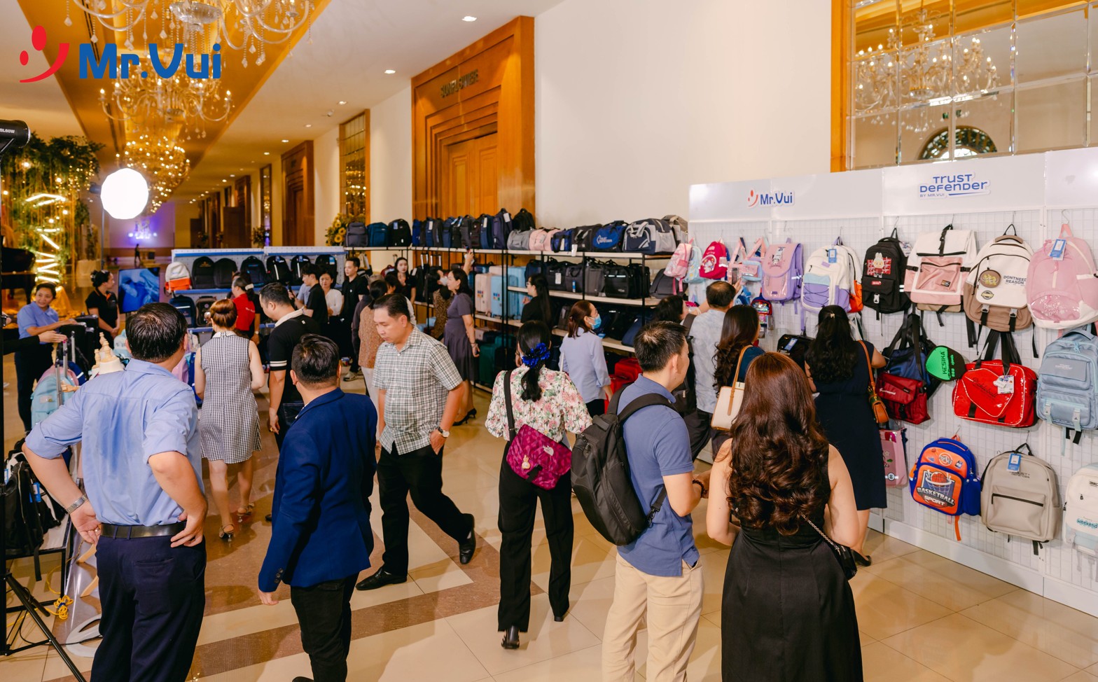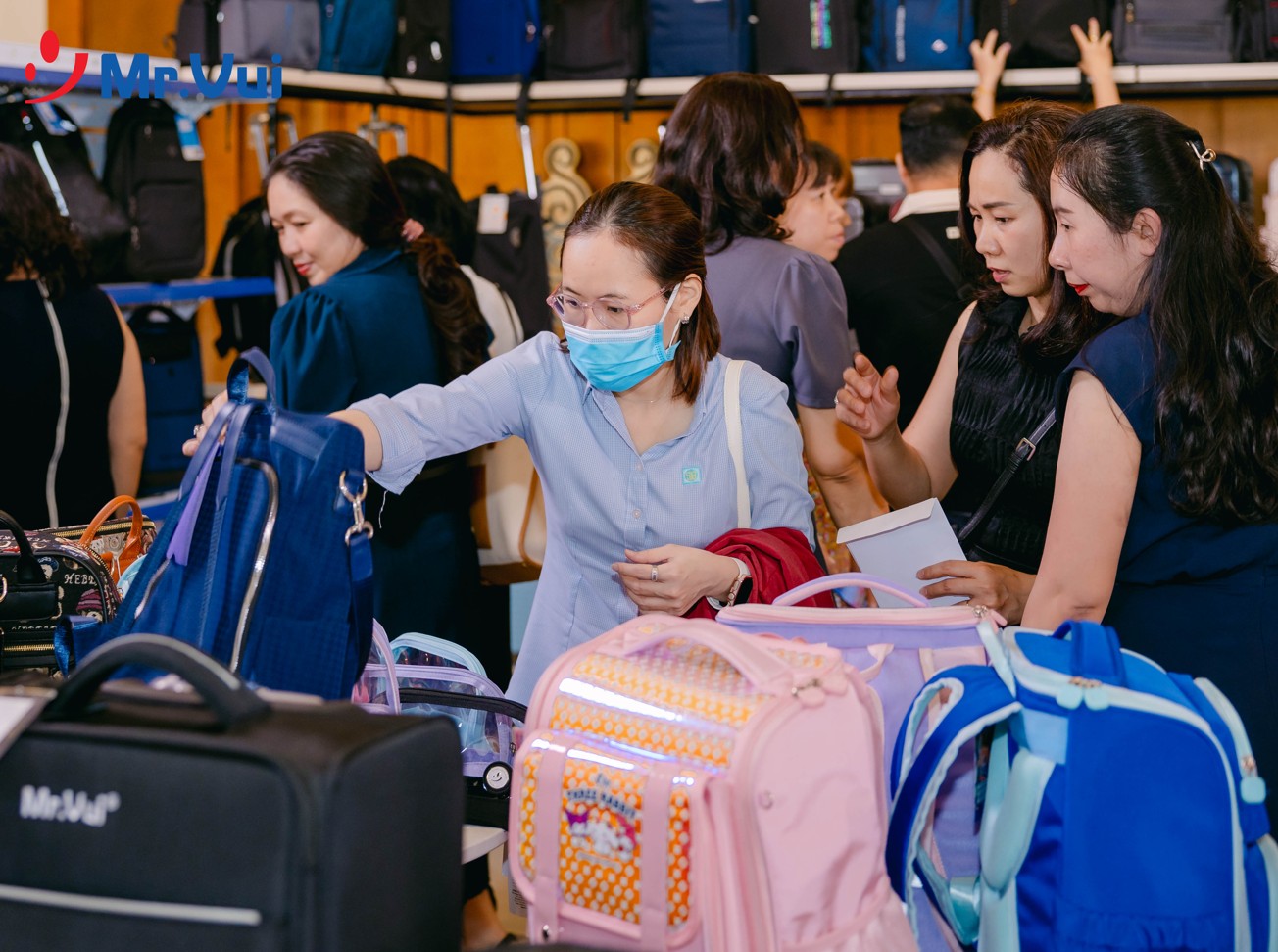 Ngay từ khi bước vào khu vực hội nghị, khách mời đã được chào đón tại các quầy booth trưng bày sản phẩm, nơi giới thiệu những dòng balo, vali, cặp học sinh mới nhất của Mr Vui. Đây là cơ hội để đối tác trực tiếp cảm nhận chất lượng sản phẩm, đồng thời trao đổi với đội ngũ tư vấn để tìm ra những giải pháp kinh doanh tối ưu