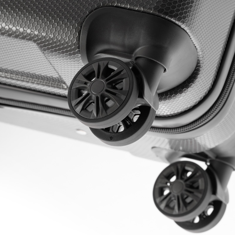 Vali gồm có 8 bánh xe bạc thép chia thành 4 đôi xoay 360 độ linh hoạt, chịu được lực nặng, giảm ồn tốt và đặc biệt bánh xe di chuyển nhẹ nhàng ở mọi địa hình.