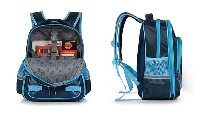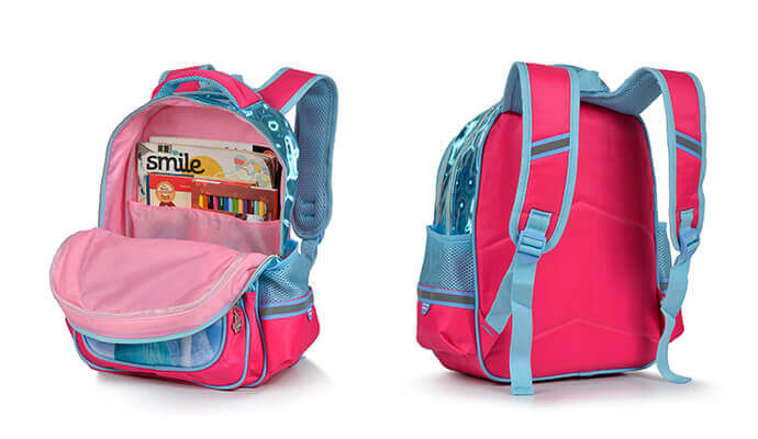 Balo có 2 ngăn chính rộng rãi và 1 ngăn phụ giúp bé dễ dàng sắp xếp sách vở, đồ đạc. Cùng với bề mặt là vải dù PVC chất liệu vải ngoại nhập có khả năng chống nước; và không có mùi hôi. Ngoài ra balo còn được trang bị túi lưới đôi đựng bình nước chắc chắn; các miếng đệm ở quai đeo và phần lưng giúp trẻ cảm thấy dễ chịu khi đeo.